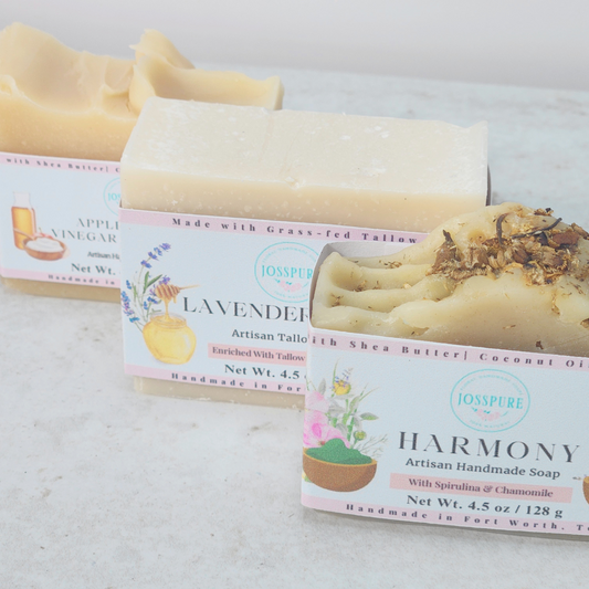 Handmade soap is cold-processed or hot-processed soap crafted from natural oils, butters, and botanicals. At Josspure, our handmade soaps include shea butter, spirulina, tallow, and essential oils for nourishing, gentle cleansing. Shop shea butter soaps.